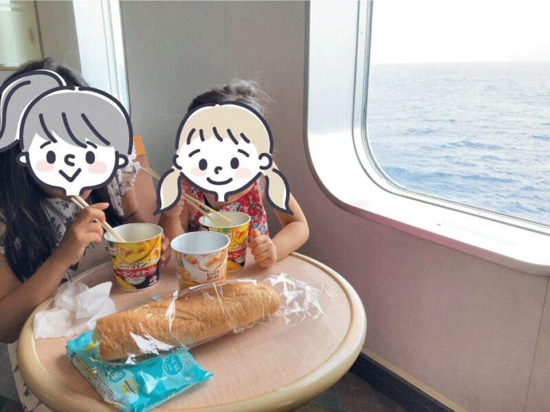 フェリーの中で過ごす時間は、不便さも含めて、とても贅沢な家族時間になると思います。