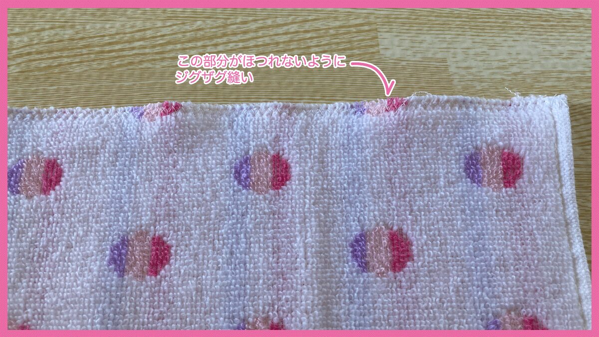 切れ端部分がほつれないようにミシンでジグザグ縫います。