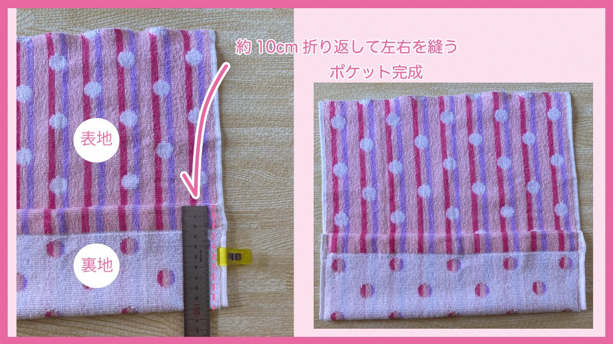 手順3 ポケット作り(手順3と手順4はどちらが先でもOK)