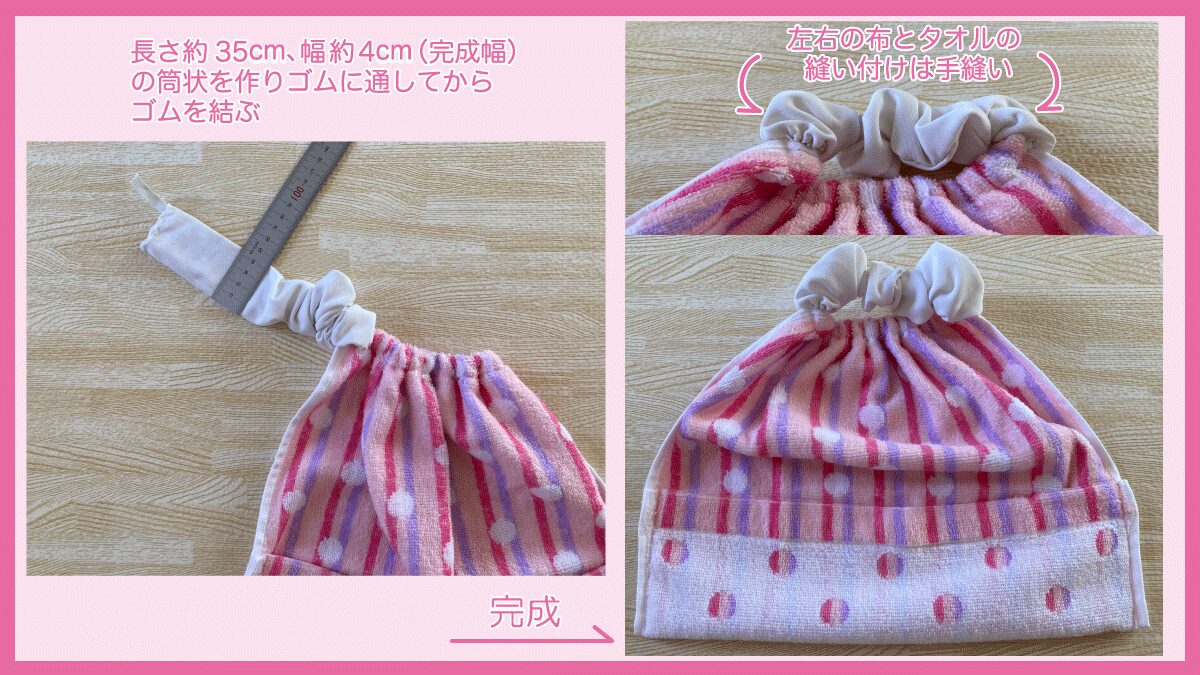 薄いタオルはミシンで縫いやすいし、乾くのも早いよ!
